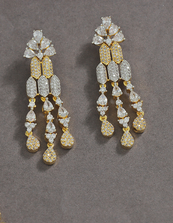 This Designer Zirconia Elegance Necklace Set features exquisite white stones set in a refined gold and rhodium polish, offering timeless sophistication. Perfectly crafted to elevate any ensemble with expert attention to detail and lasting brilliance.