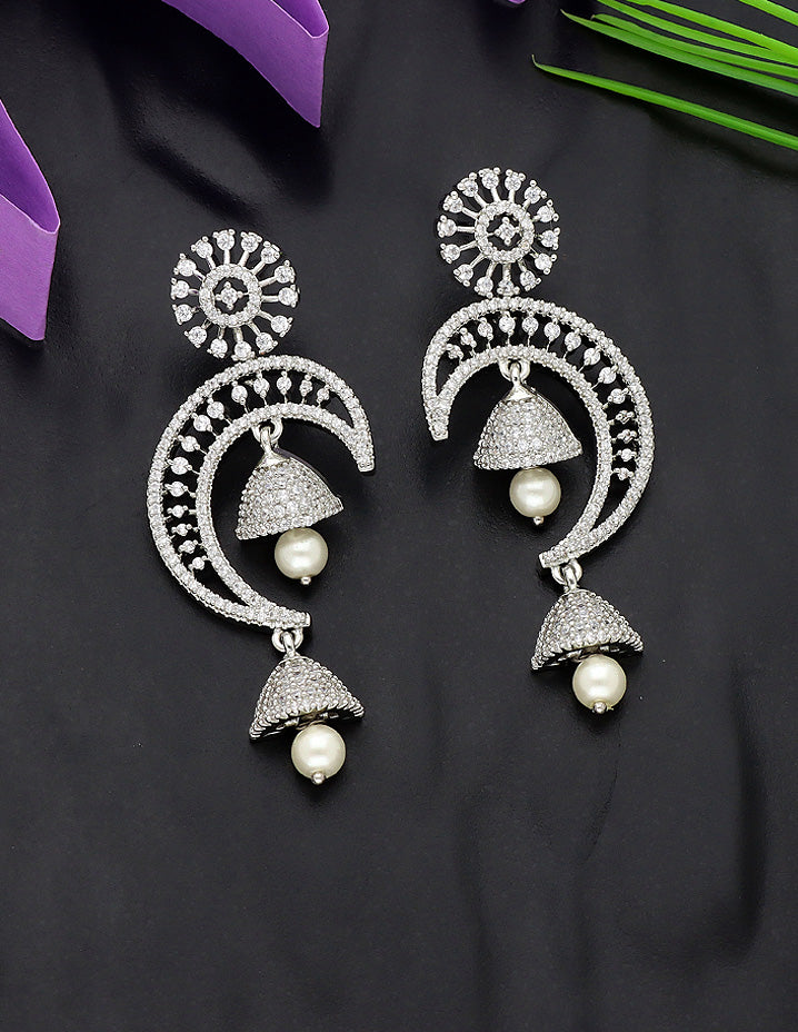 Designer Zirconia Rhodium Polish Diamond Dewdrop Earrings