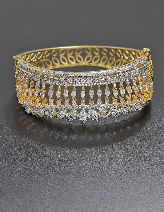 Designer Zirconia Gold Polish Floral Loop Earrings