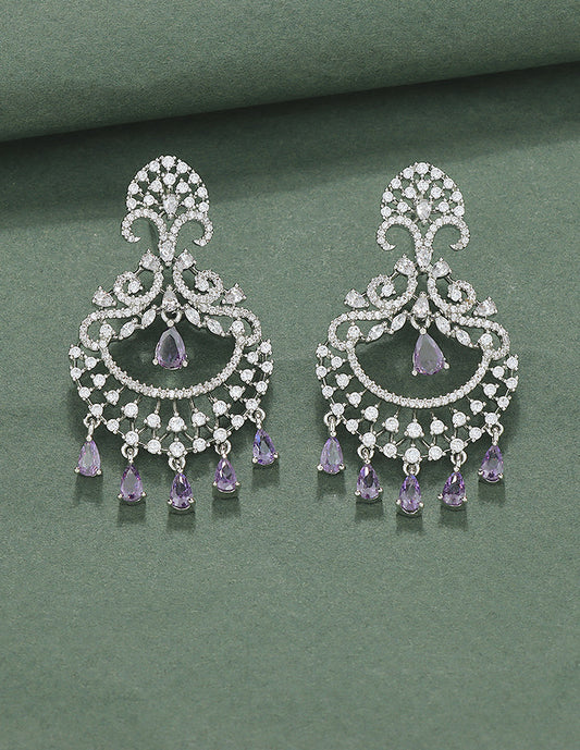 Designer Zirconia Amethyst Royale Chandbali Earrings
