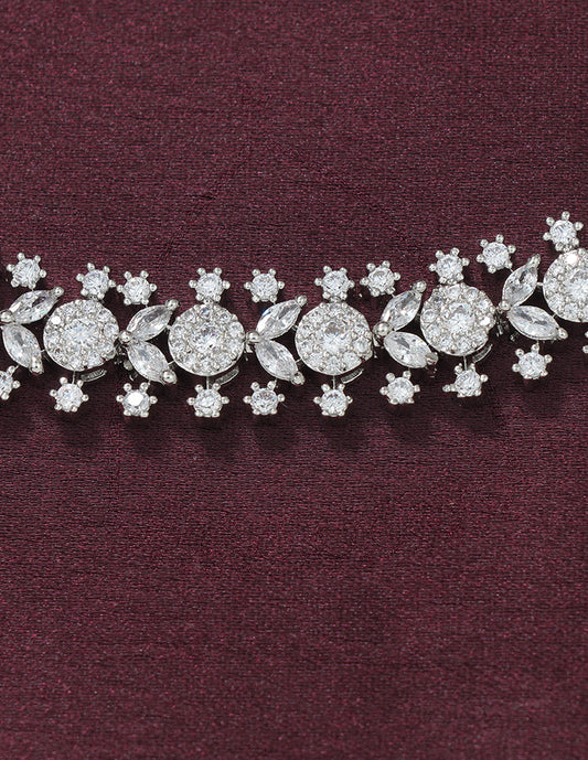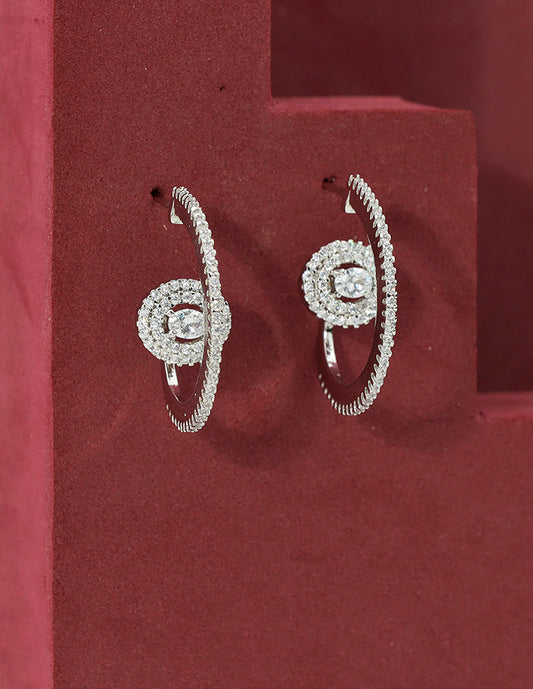 Designer Zirconia Rhodium Polish Floral Loop Earrings