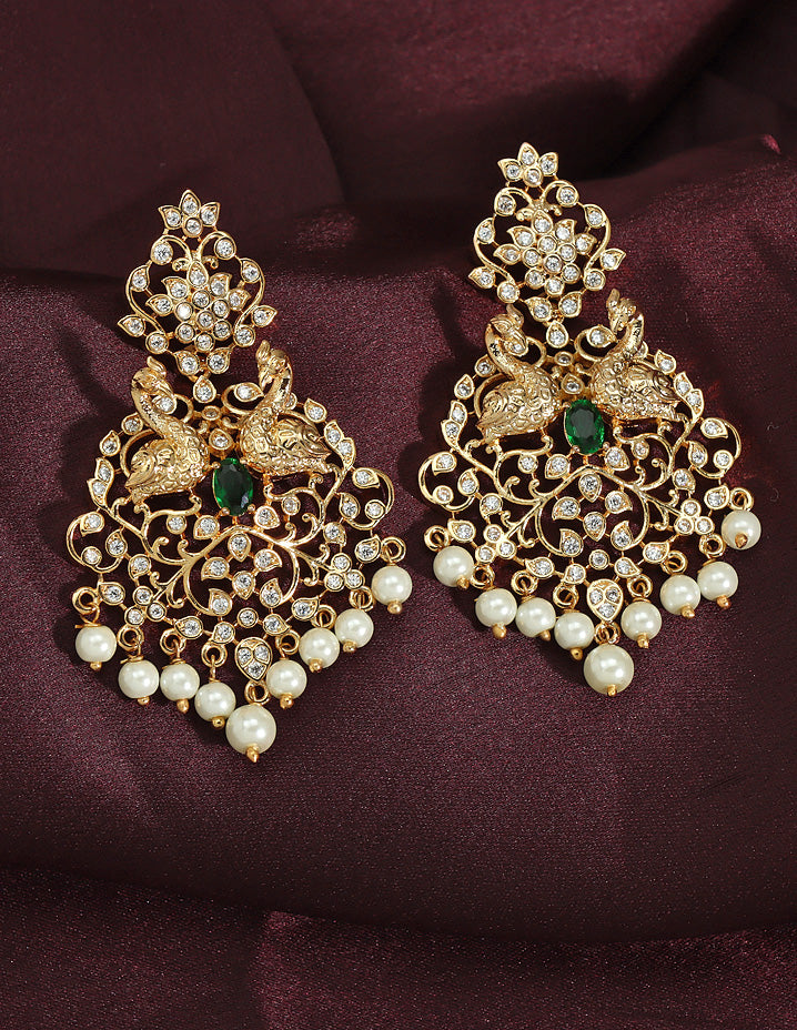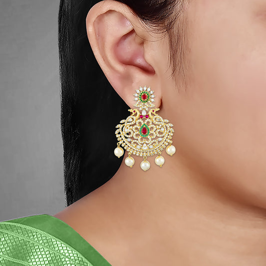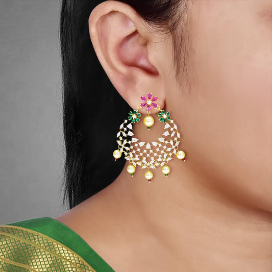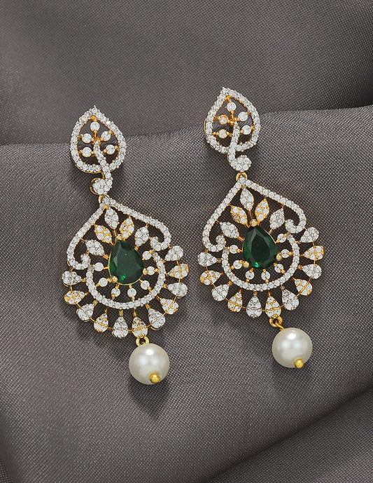 Designer Zirconia Emerald Grace Pearl Drop Earrings