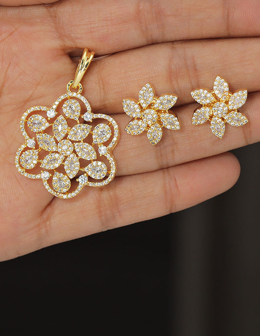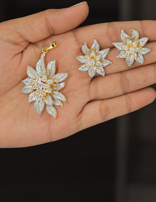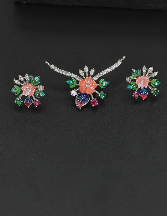 Designer Zirconia Rhodium Enchanted Blossom Pendant Set