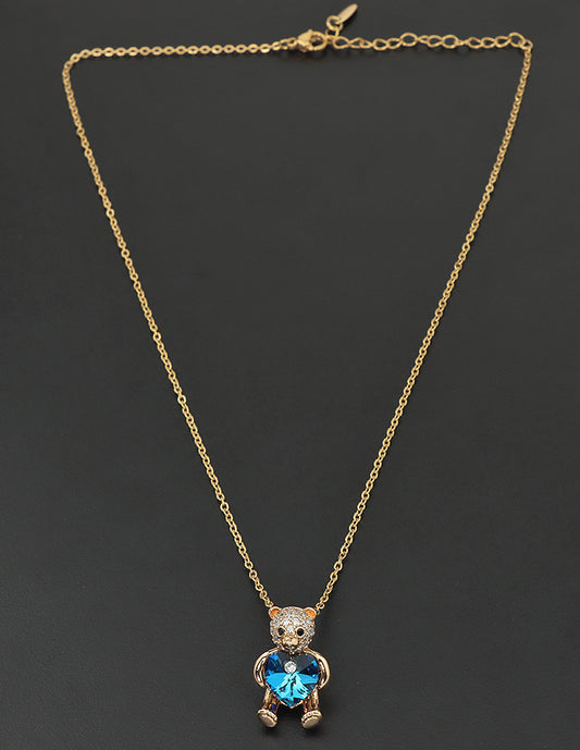 Swarovski Crystal Midnight Blue Teddy Bear Chain Pendant