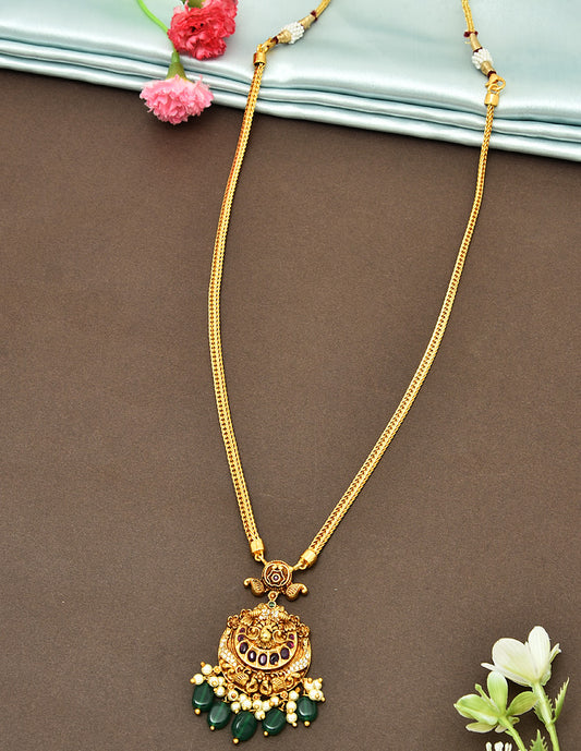 Designer Monalisa Emerald Beads Mala with Victorian Pendant