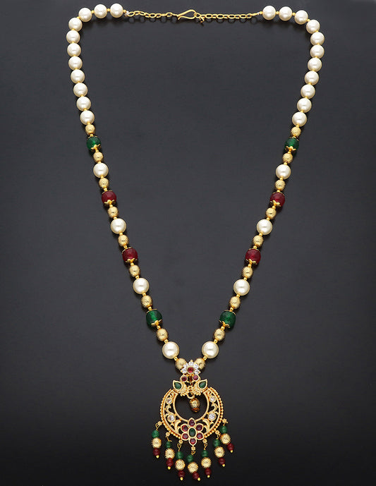 Designer Pearls and Monalisa Beads Floral Pendant Mala