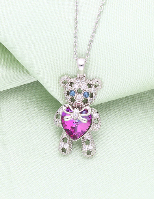 Swarovski Crystal Pink Teddy Bear Chain Pendant