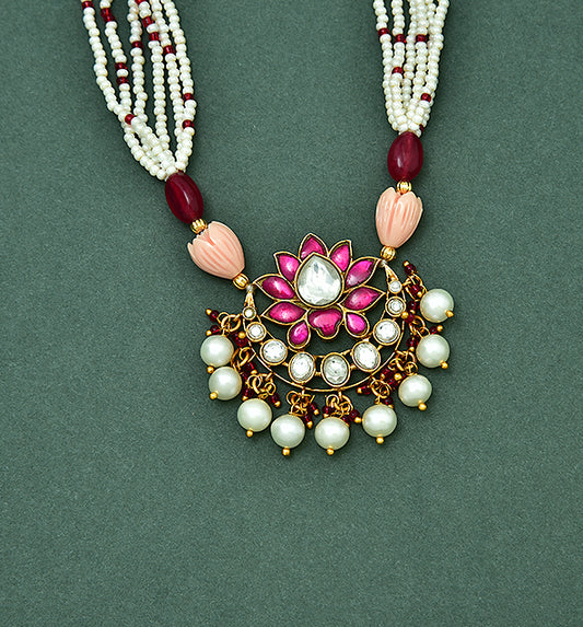 Designer Pearls and Monalisa Beads Floral Pendant Mala