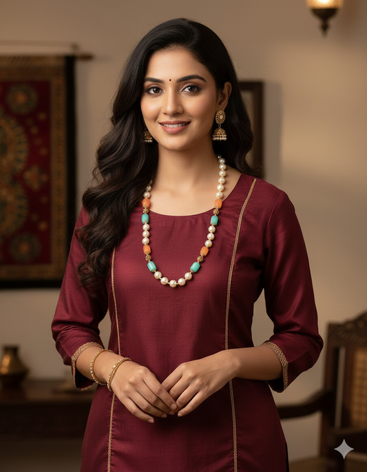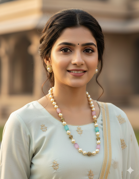 Designer Pearls and Monalisa Beads Floral Pendant Mala