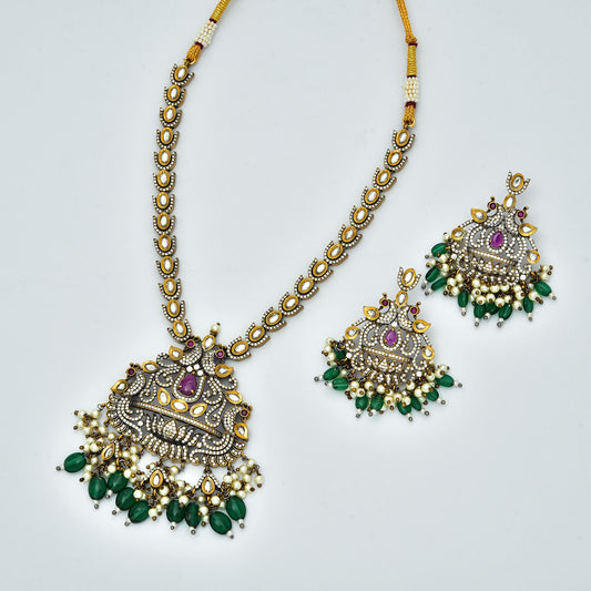 Zirconia Peacock Design Victorian Necklace Set
