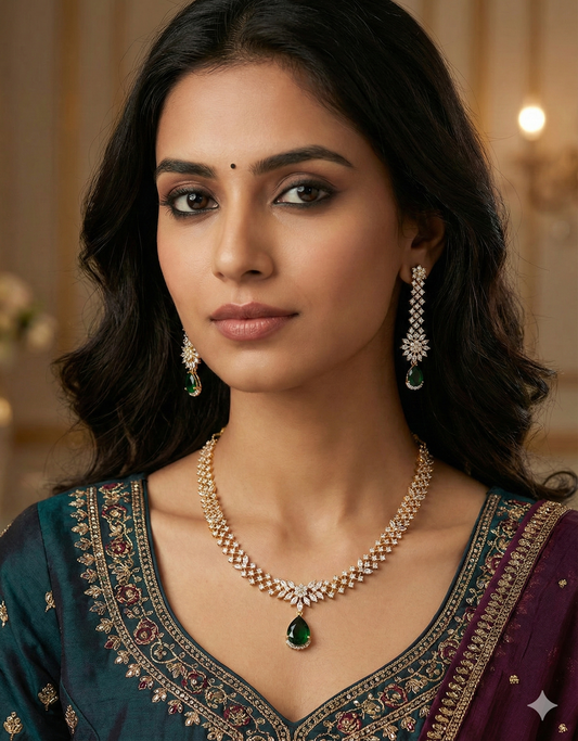 Designer Lakshmi Devi Emerald Matt Kempu Necklace Set