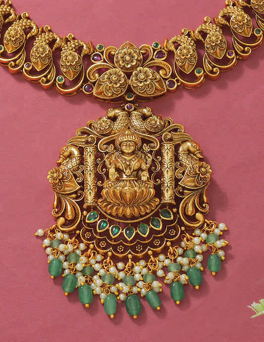 Designer Radiant Emerald Matt Kempu Necklace Set