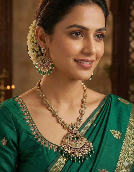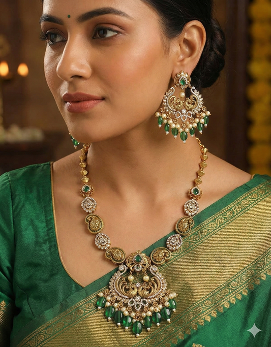 Designer Radiant Emerald Matt Kempu Necklace Set