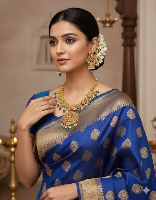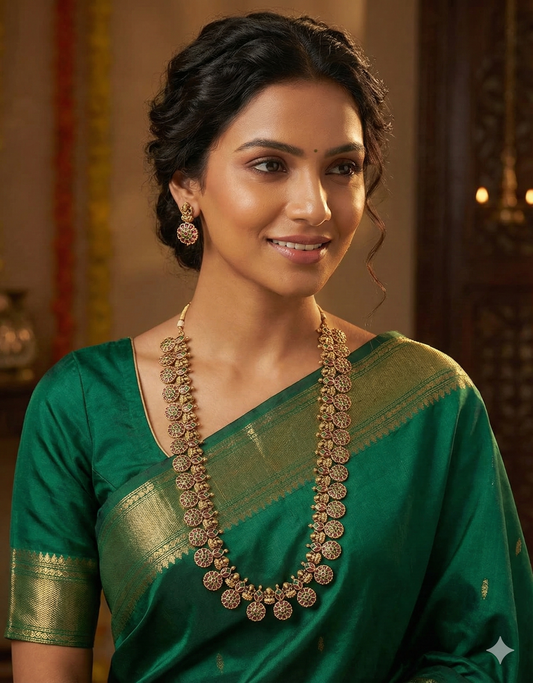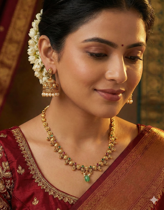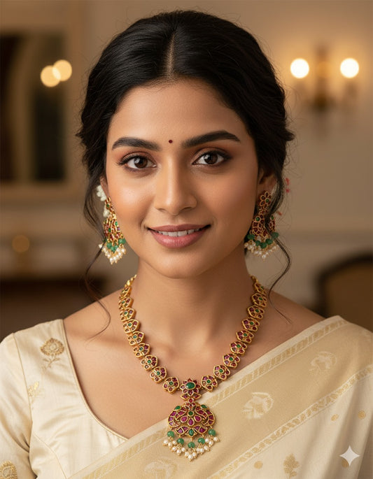 Designer Lakshmi Devi Emerald Matt Kempu Necklace Set
