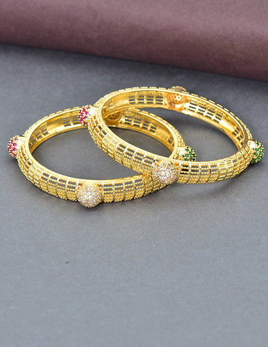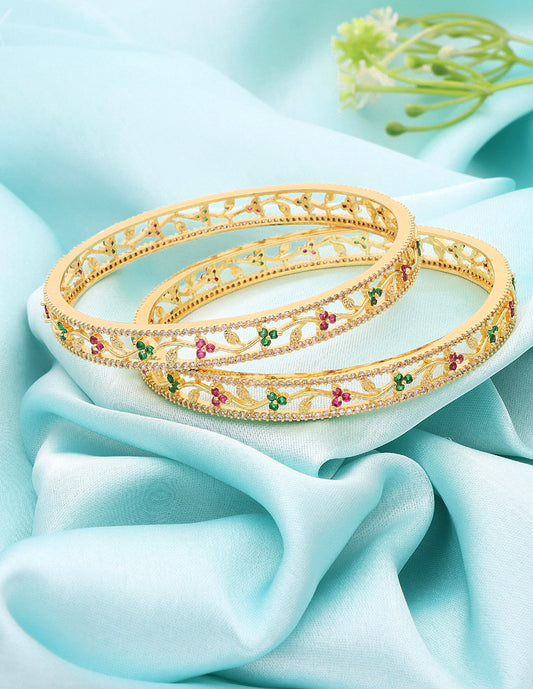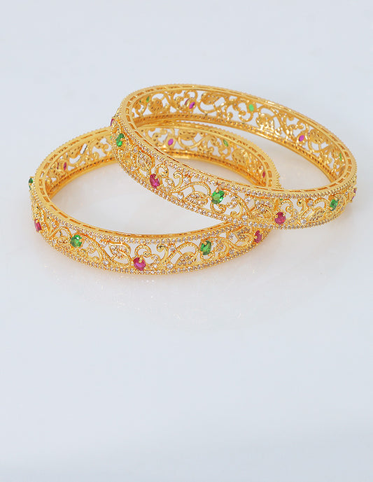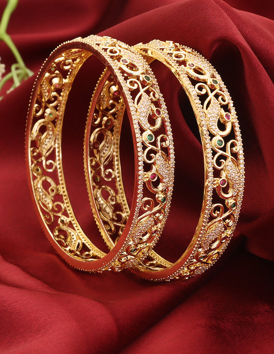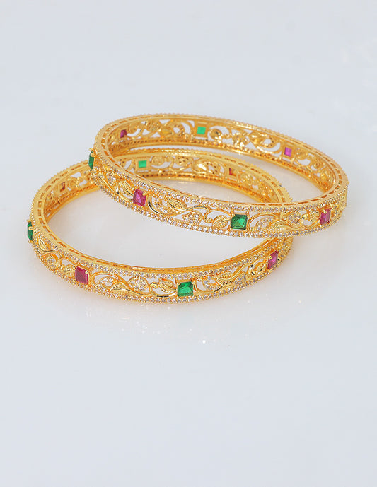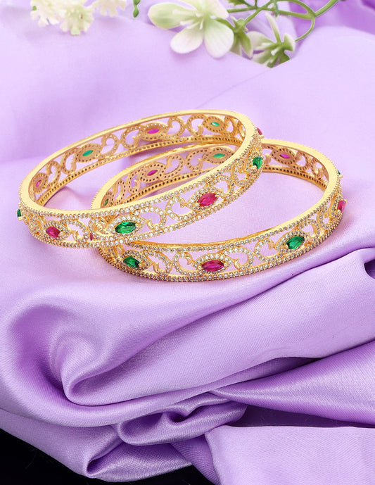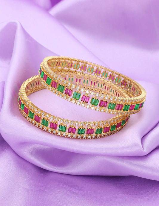 Designer Zirconia Peacock Rani Pink & Green Bangles