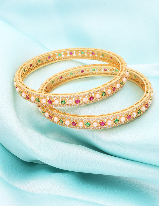 Designer Zirconia Aqua Blue & Baby Pink Bangles