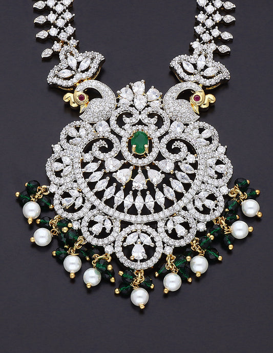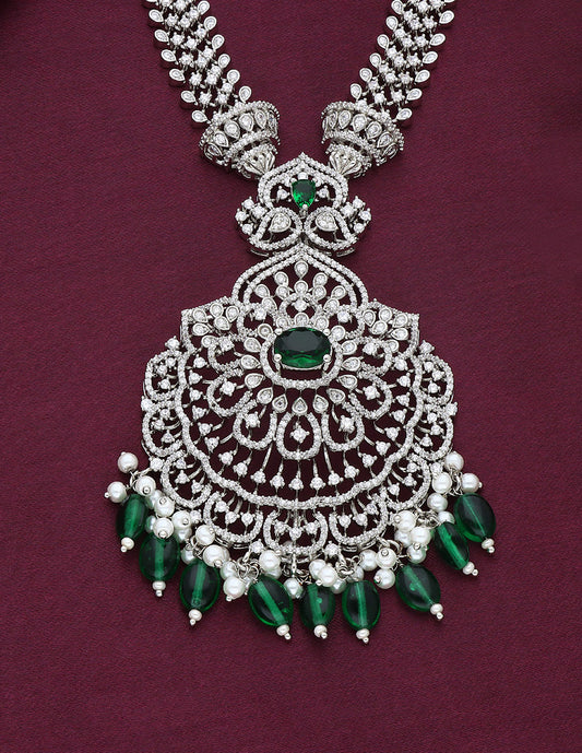 Designer Rhodhium Polish Zirconia Emerald Necklace Set