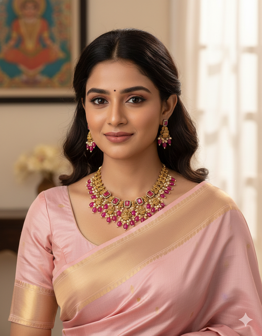 Designer Zirconia Royal Devi Temple Kempu Necklace Set