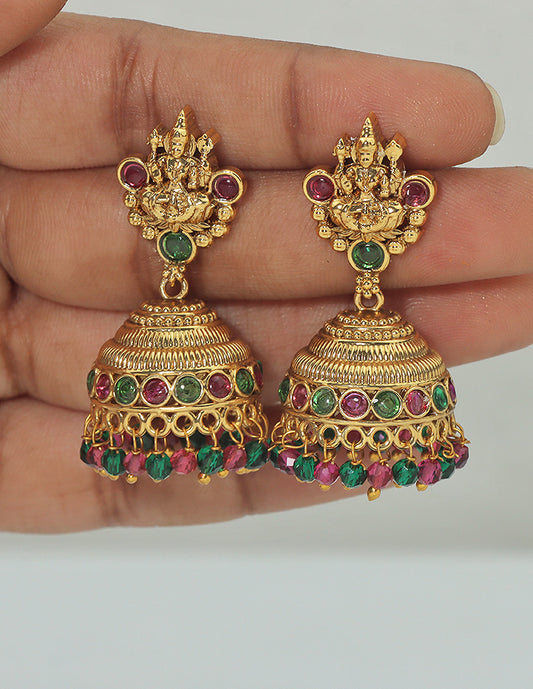 Designer Matt Kempu lakshmi Devi Temple Jhumka Earrings