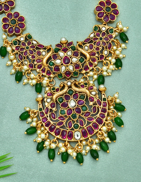 Designer Matt Rani Pink & Emerald Lakshmi Devi Long Haaram Set