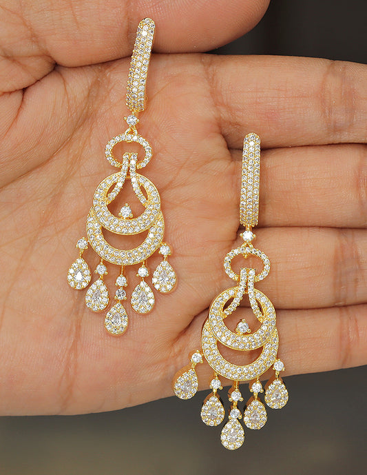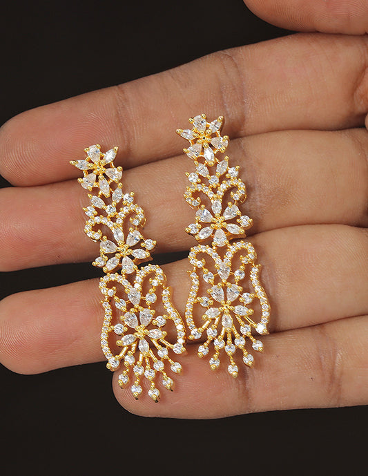Designer Zirconia Floral Cascade Sparkle Earrings