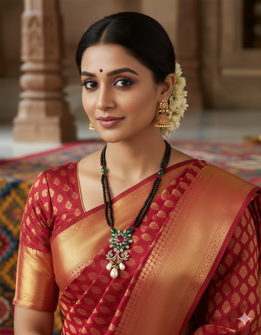 Zirconia Crystal Black Bead Peacock Mangalsutra