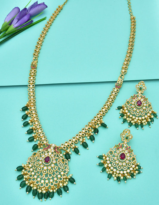 Zirconia Necklace Set With Green Beads