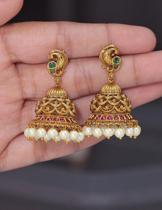 Designer Matt Kempu Beautiful peacock Design Jhumka Earrings