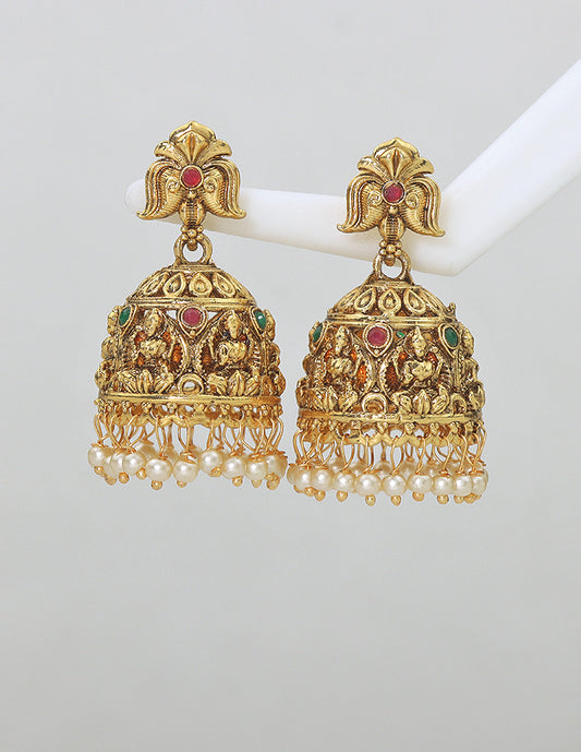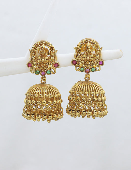 Designer Matt Kempu Temple Design Lakshmi Devi Jhumka Earrings