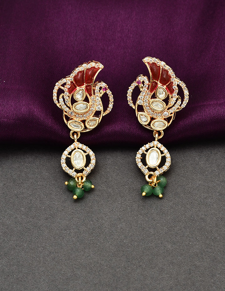 Introducing the stunning Lakshmi Devi pendant with emerald beads and zirconia. This multi-layered beads mala will elevate your wedding look effortlessly. Why choose long harams with silver and gold polish when you can flaunt your style with these beautiful bead malas?