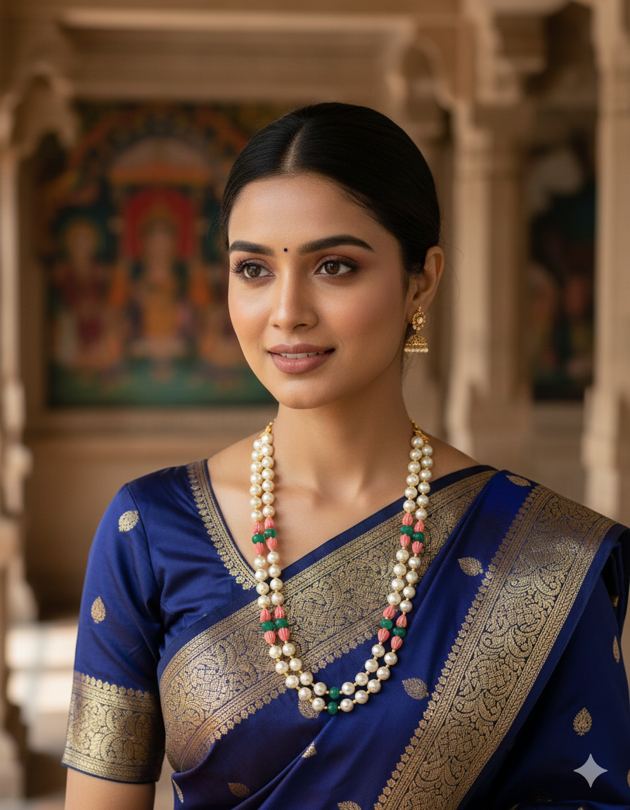 Designer 2-Lines Pearls and Tulip Beads Mala