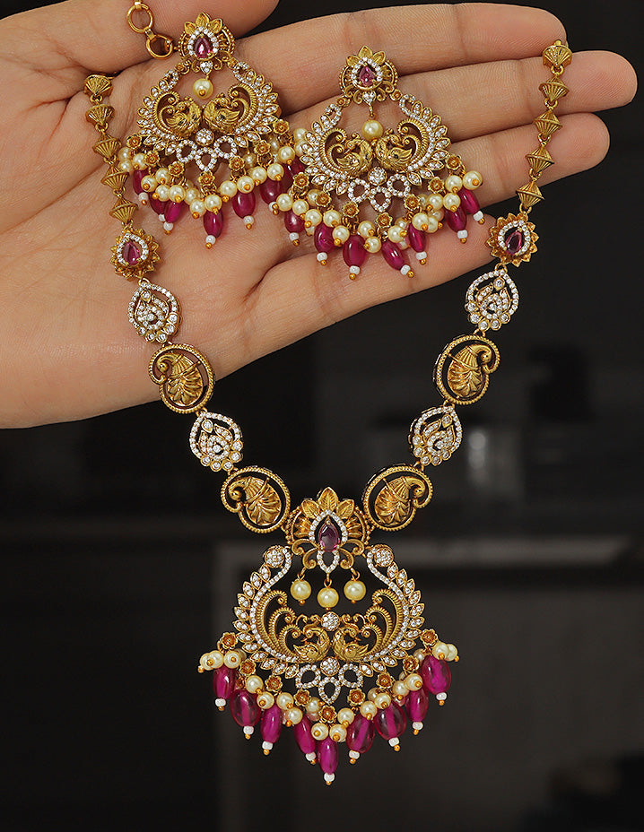 Designer Elegant Ruby Matt Kempu Necklace Set