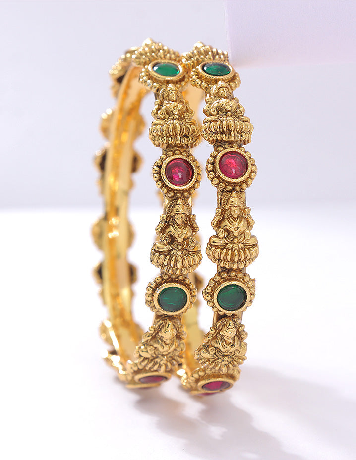 Elegant antique-plated baby bangles adorned with sparkling ruby and emerald Kempu stones — perfect for any party or traditional event. Stylish, timeless, and crafted with premium quality to make your little one shine!