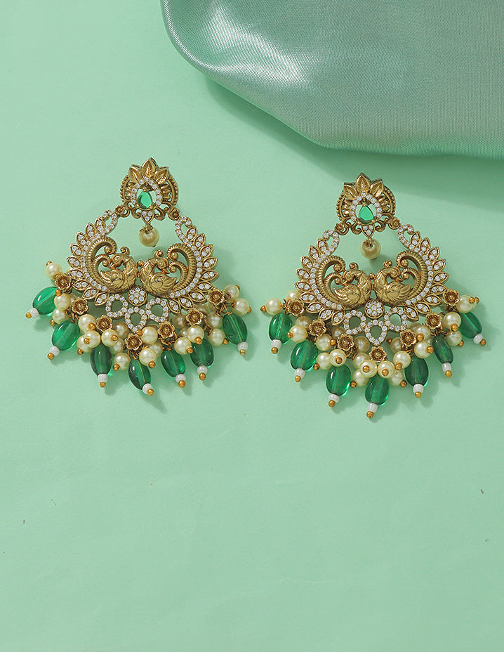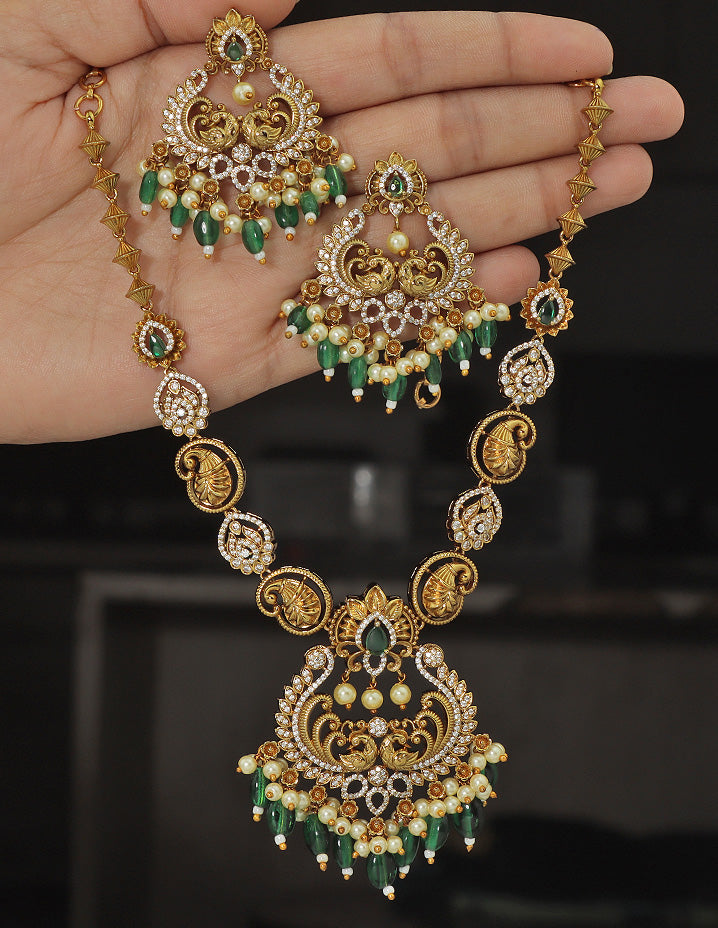 Designer Radiant Emerald Matt Kempu Necklace Set