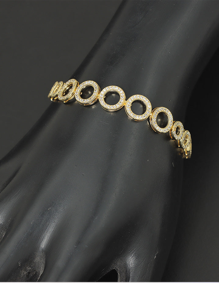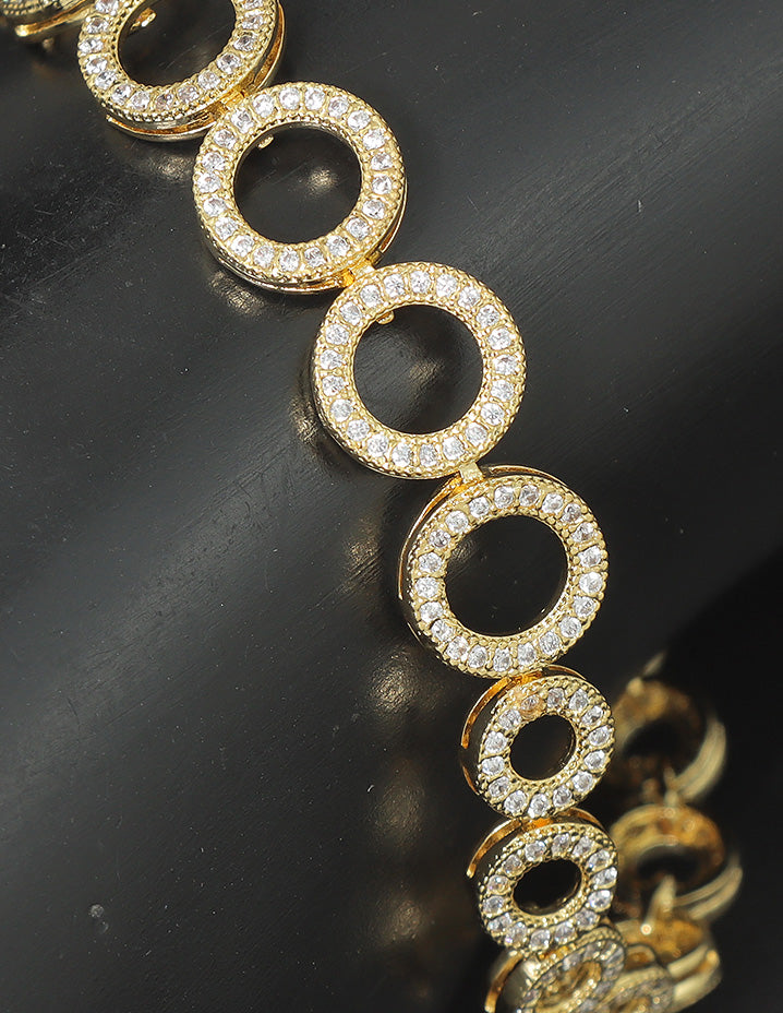 Stylish Gold Polish Bracelet studded with dazzling White American Diamonds for a classy touch. Perfect for daily wear, parties, or any special occasion!