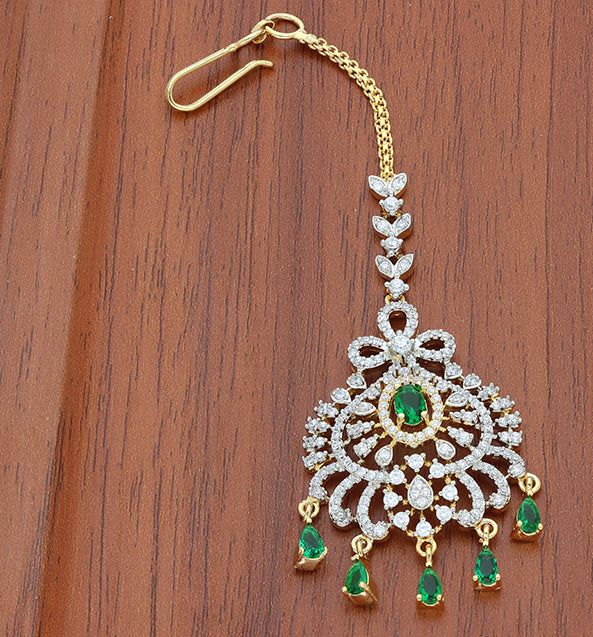 Elevate your traditional look with our Designer Zirconia Maang Tikka. Made with high-quality zirconia and available in GJ and gold polish, our maang tikka comes in elegant colors suitable for all traditional events. A must-have addition to your jewelry collection.