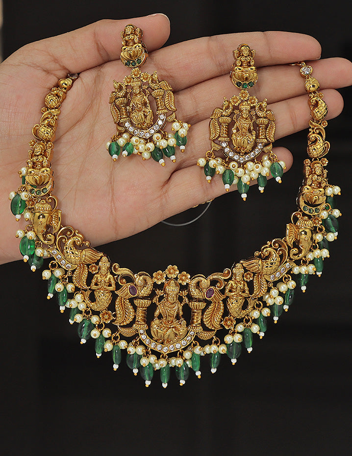 Designer Zirconia Royal Eemerald Beads Necklace Set