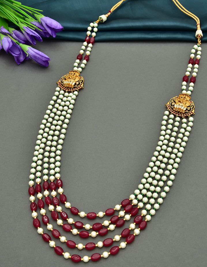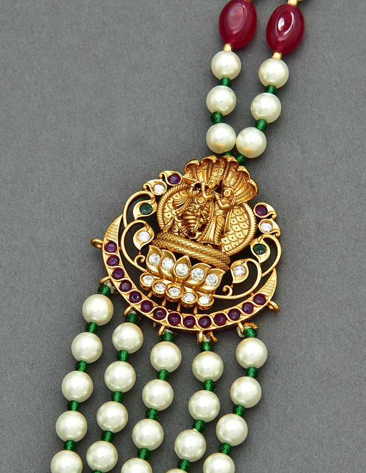 Multi-Line Pearl Beads Mala with Radha-Krishna Side Lockets