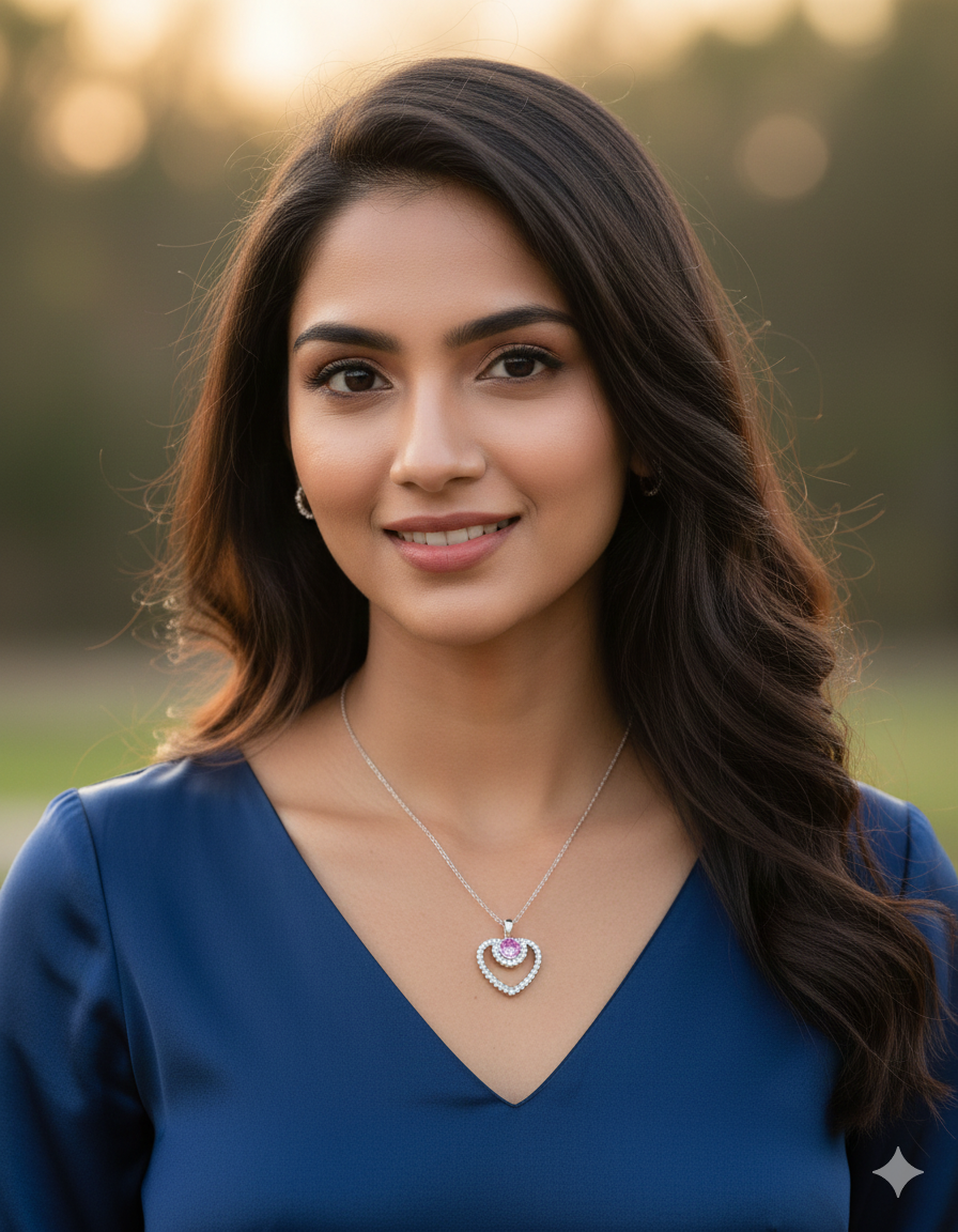 A dazzling heart-shaped pendant adorned with shimmering stones and a radiant purple centerpiece — perfect to add a touch of romance and sparkle to any outfit. 💜✨