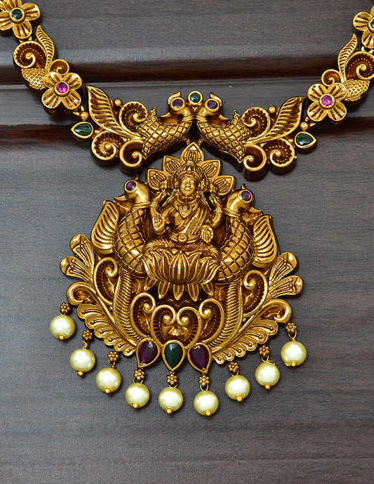 Designer Antique Lakshmi Devi Kempu Necklace Set