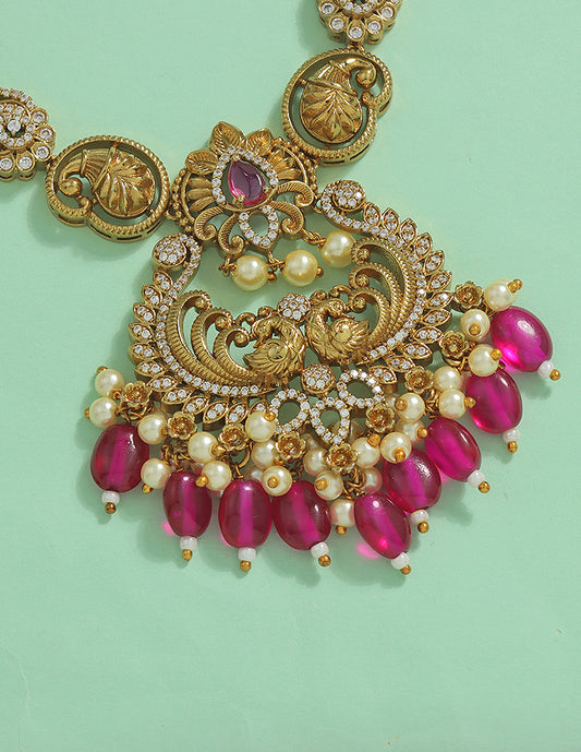 Designer Elegant Ruby Matt Kempu Necklace Set