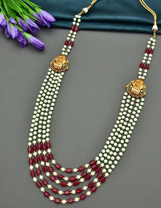 Multi-Line Pearl Beads Mala with Radha-Krishna Side Lockets