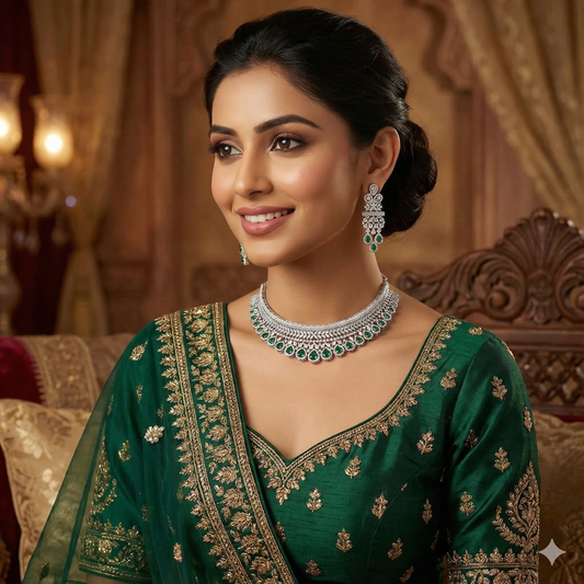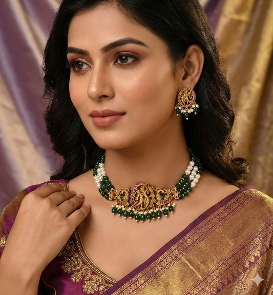 Designer Matt RadhaKrishna Green Beads Choker Set