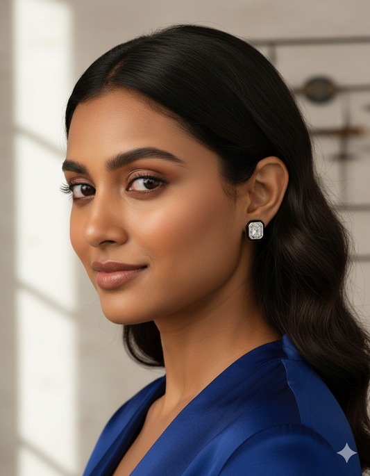 Designer Black Frame Amethyst Crystal Stud Earrings