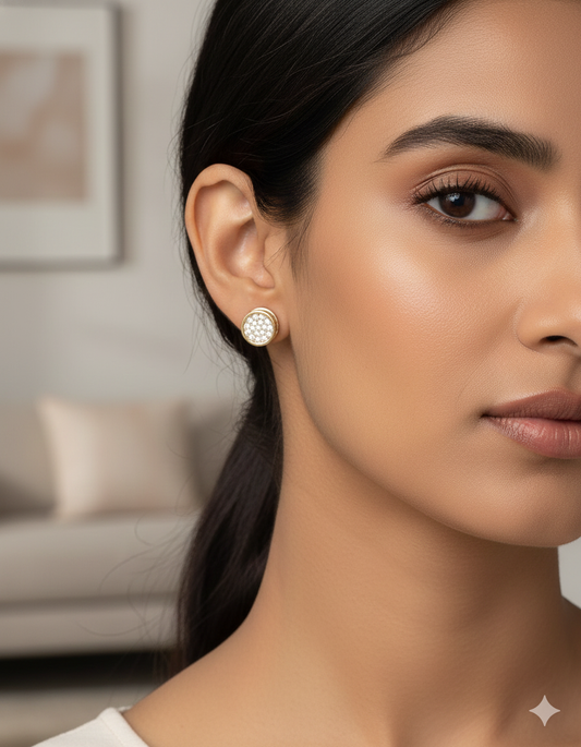 Designer Pink Frame Ruby Crystal Stud Earrings