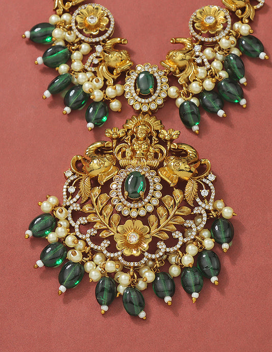 Designer Lakshmi Devi Emerald Matt Kempu Necklace Set