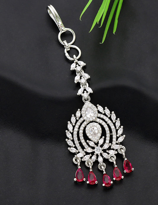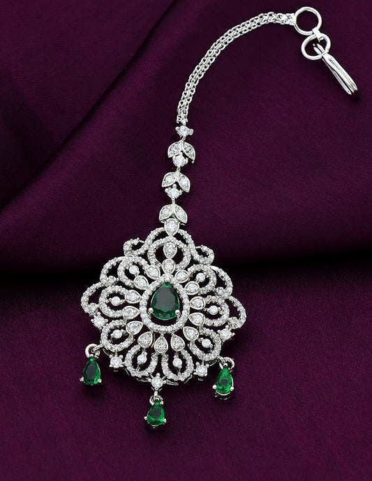 Designer Rhodhium Polish Zirconia Maang Tikka