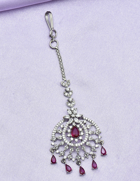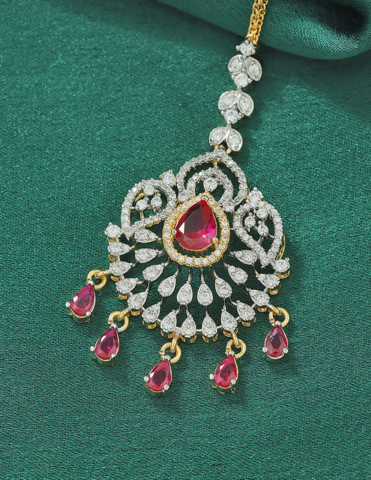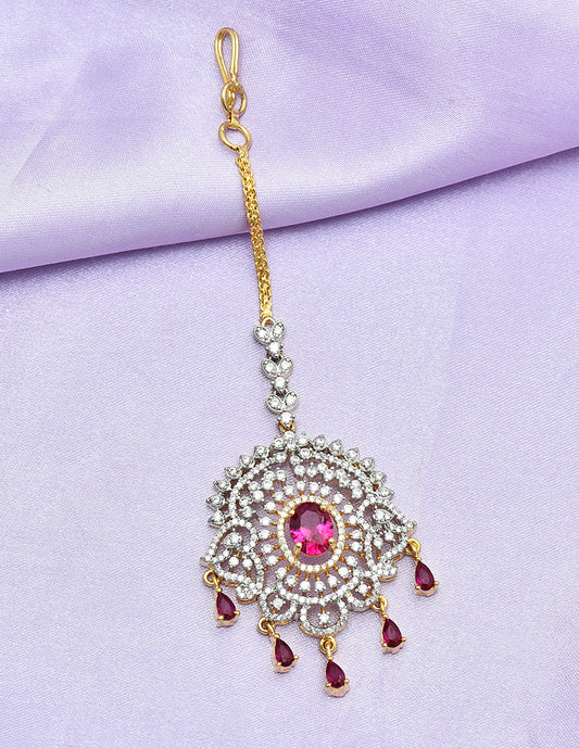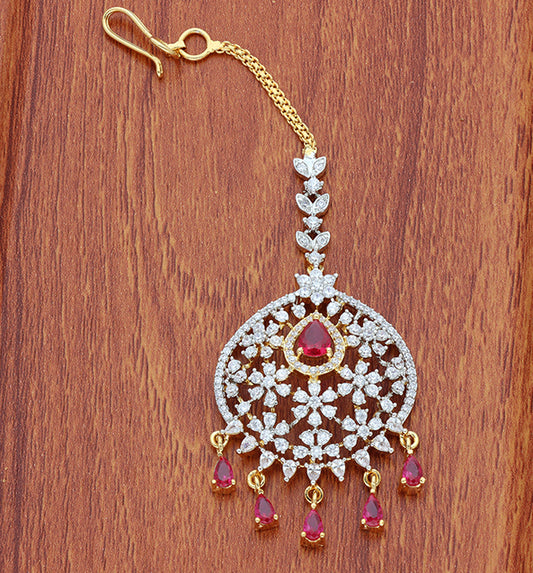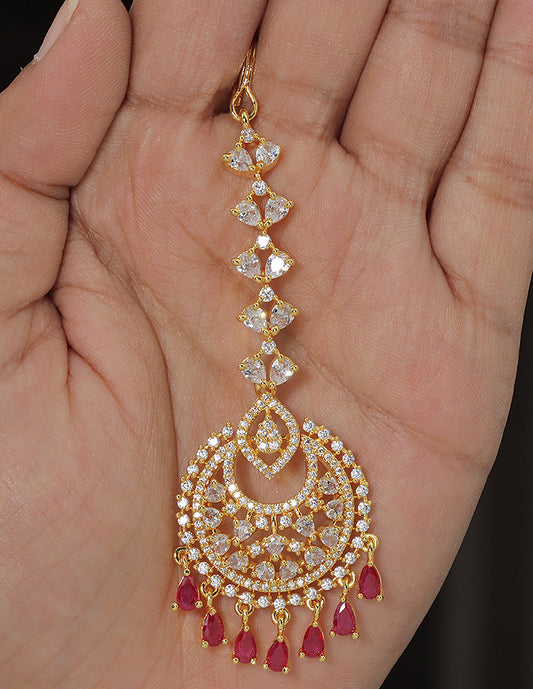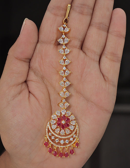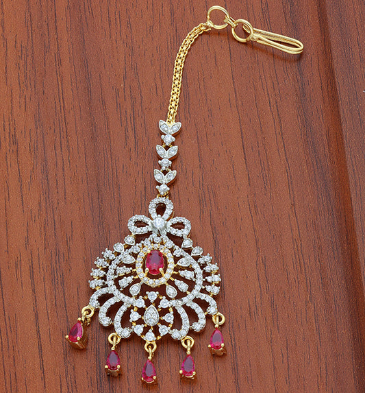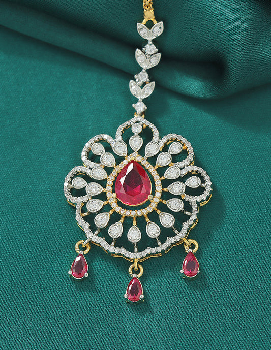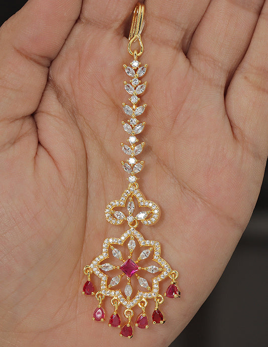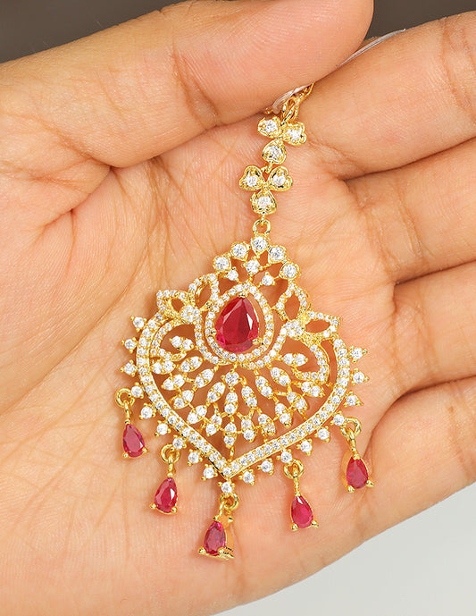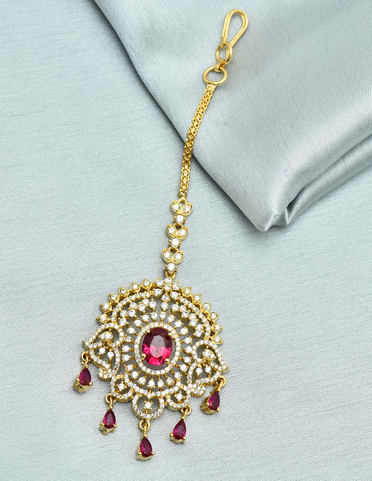 Designer Gold Polish Zirconia Ruby Radiance Maang Tikka