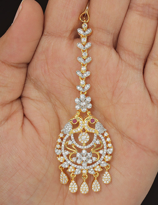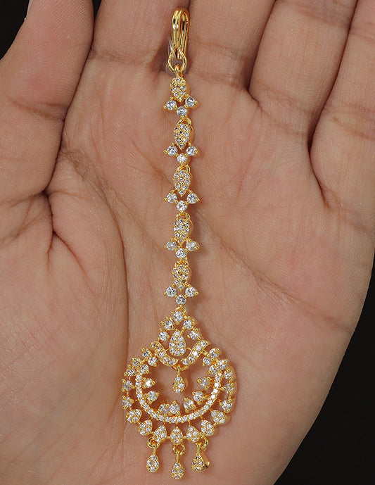 Designer Gold Polish Zirconia Pearl Maang Tikka