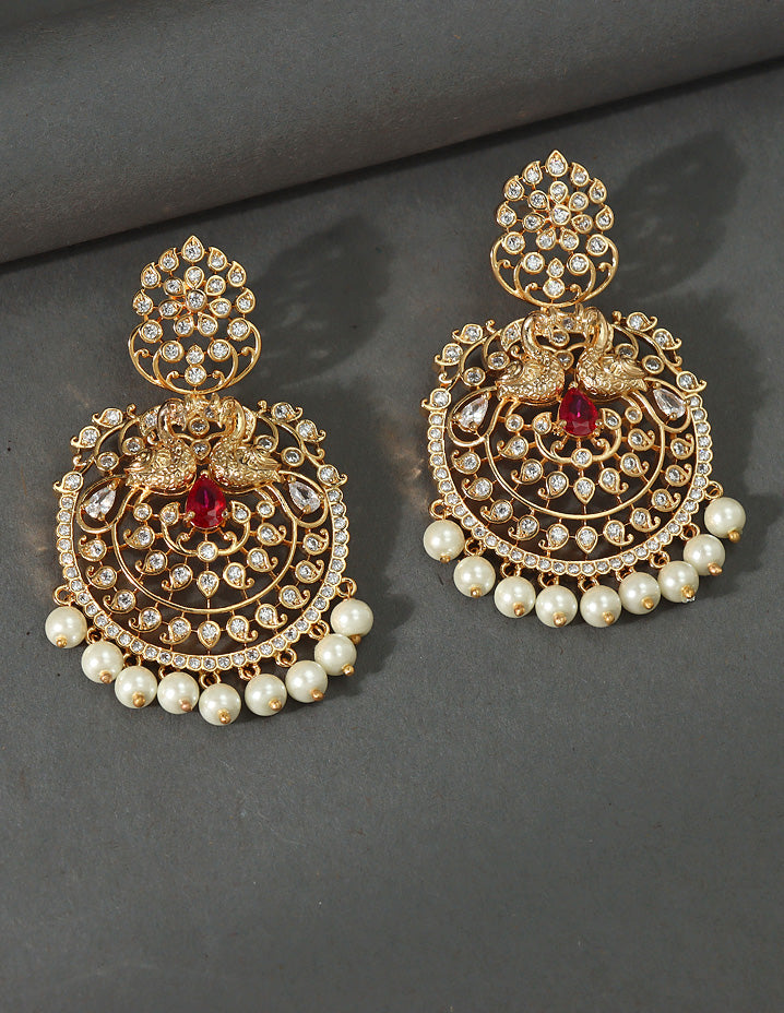 Designer Zirconia Gold Dangler Earrings